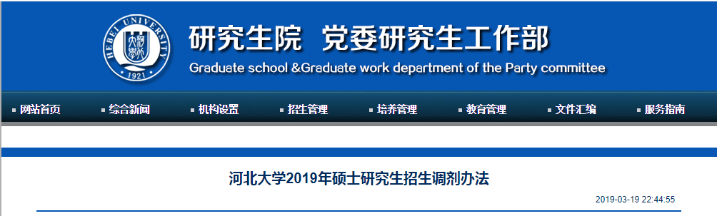 河北大學(xué)2019年碩士研究生招生調(diào)劑辦法