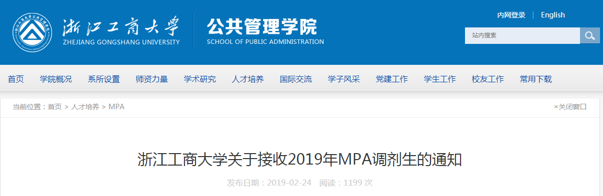 導讀:考研初試結(jié)束之后,考生們在準備MPA復試的同時,也在準備MPA的調(diào)劑。為了幫助大家做好MPA調(diào)劑準備,小編給大家整理了“MPA接受調(diào)劑的院校 | 浙江工商大學2019年接收MPA調(diào)劑的通知”,希望對需要調(diào)劑的同學有所幫助。