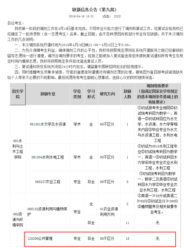 考研初試結束之后,考生們在準備MPA復試的同時,也在準備MPA的調劑。為了幫助大家做好MPA調劑準備,小編給大家整理了“MPA接受調劑的院校 | 東北農業(yè)大學2019年接收MPA調劑的通知”,希望對需要調劑的同學有所幫助,以下為調劑通知: