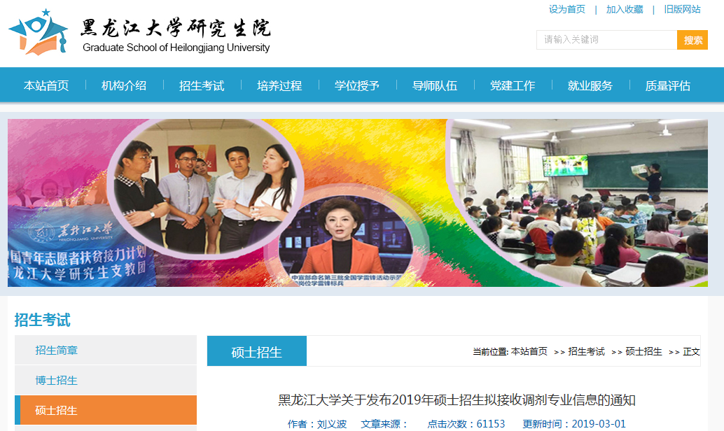 黑龍江大學(xué)2019年碩士招生預(yù)計(jì)接收調(diào)劑專業(yè)(非全日制)