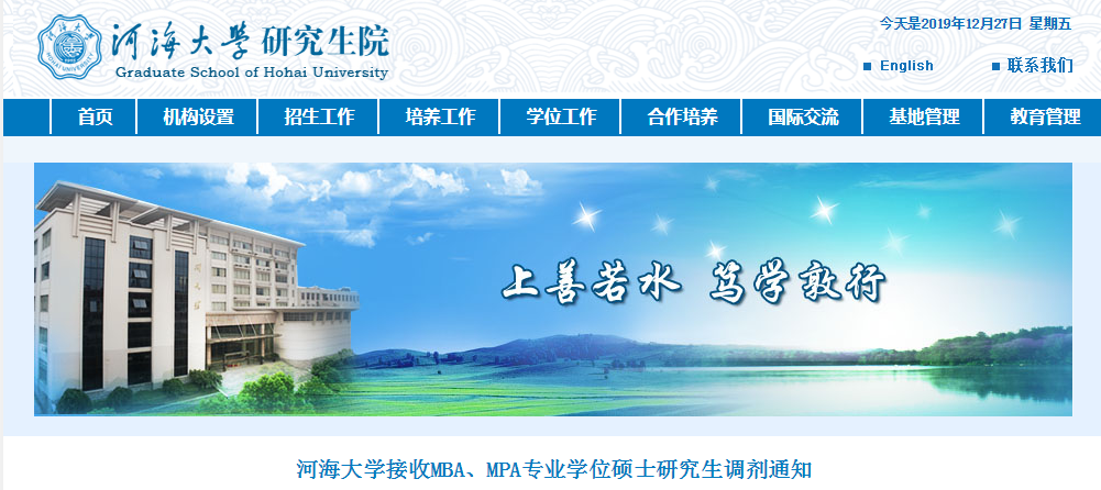 MPA接受調(diào)劑的院校 | 河海大學(xué)2019年接收MPA調(diào)劑的通知”的全部?jī)?nèi)容,更多關(guān)于MPA院校調(diào)劑信息,盡在“