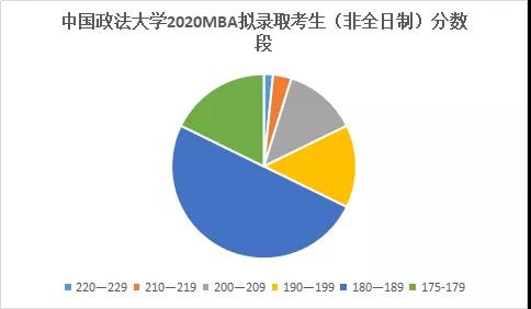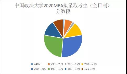 解讀2:中國政法大學(xué)全日制MBA擬錄取考生的初試成績多在190~209之間,擬錄取的最低分175分,最高分243分,平均分201分。