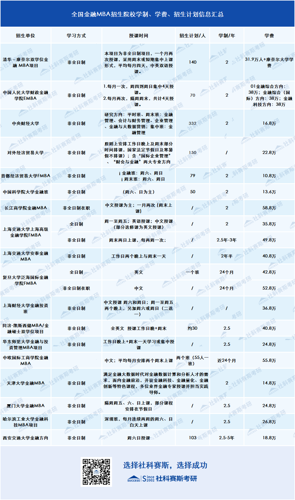 福利:為了方便大家篩選院校,關(guān)注“社科賽斯考研”公眾號(hào),后臺(tái)回復(fù)“金融MBA”可獲得檢索版院校信息匯總哦!