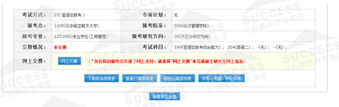11.生成報名號,下載報名信息表,確認(rèn)信息無誤且確定報考報名院校,請進(jìn)行網(wǎng)上繳費(fèi):