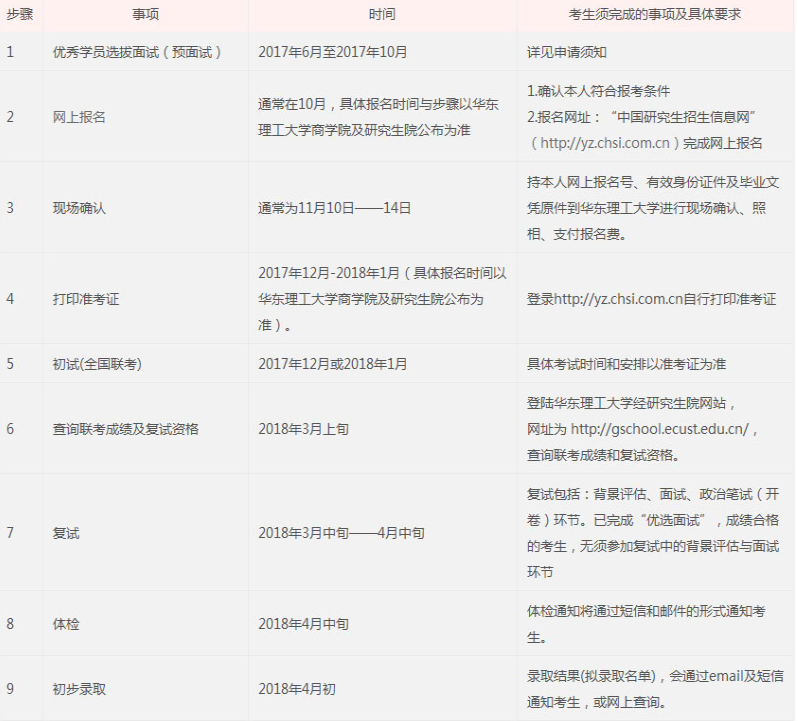 導(dǎo)讀:2018年華東理工大學(xué)MBA報(bào)考流程程序復(fù)雜,文字太多,看這下面就忘記了上面的內(nèi)容。加油菌分享給你2018年華東理工大學(xué)MBA招生報(bào)考流程的圖,一目了然,看著圖對(duì)照時(shí)間備考進(jìn)行就可以了。報(bào)考2018年華東理工大學(xué)MBA的筒子們加油!