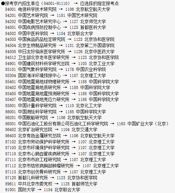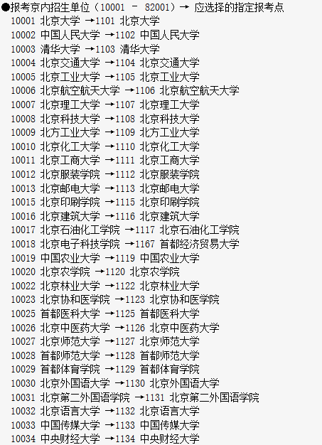 一、報(bào)考 京內(nèi) 招生單位的考生,應(yīng)按以下規(guī)定選擇報(bào)考點(diǎn):