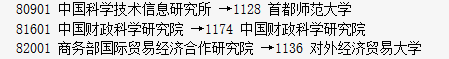 1153中國(guó)政法大學(xué)、1166中國(guó)青年政治學(xué)院。