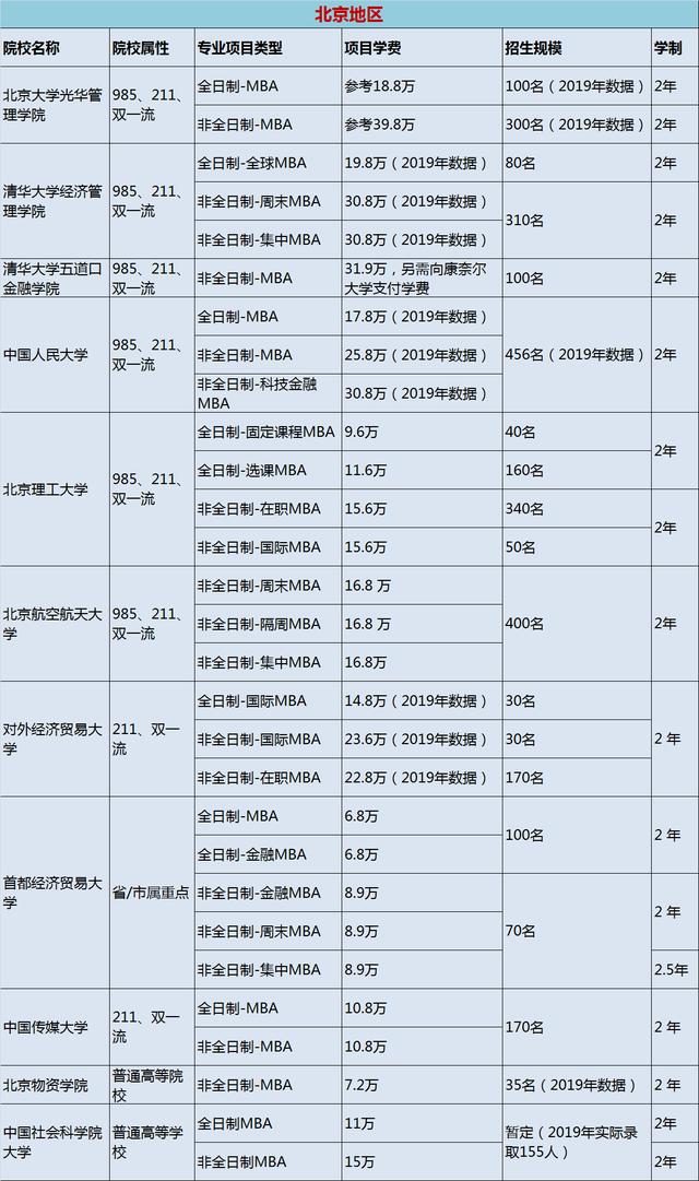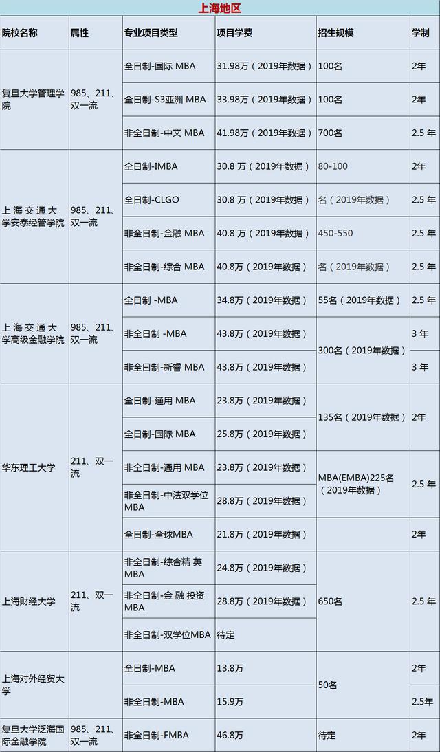 MBA學(xué)費(fèi)多少?學(xué)制幾年?今年招生多少人?這些都是廣大考生比較關(guān)注的問題,目前各院校2020MBA招生簡章已經(jīng)陸續(xù)公布,學(xué)費(fèi)、招生人數(shù)、學(xué)制等考生關(guān)心的招生信息和報(bào)考信息都在招生簡章中有說明。小編為大家整理了不同院校的招生簡章信息,大家可以根據(jù)自己的需求了解院校信息,祝每位考生都能順利考入自己心儀的學(xué)校!