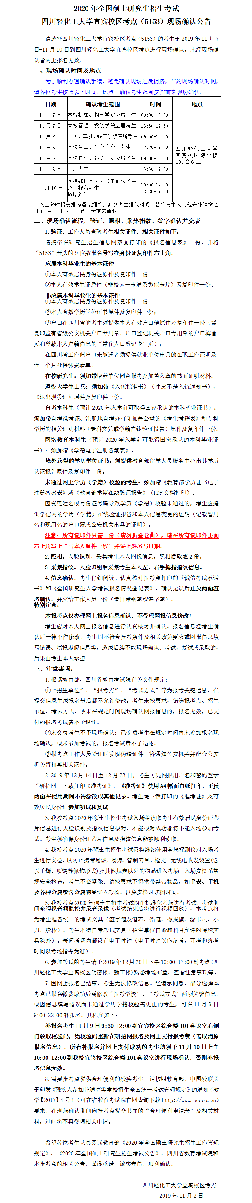 以上就是“2020MBA現(xiàn)場確認(rèn)時(shí)間:四川輕化工大學(xué)(宜賓校區(qū))于11月7-10號(hào)現(xiàn)場確認(rèn)另附所需材料”的全部內(nèi)容!請考生務(wù)必參加現(xiàn)場審核,祝你考研成功。