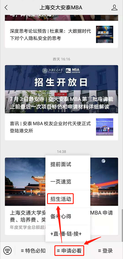 國(guó)際MBA項(xiàng)目、中國(guó)全球運(yùn)營(yíng)領(lǐng)袖項(xiàng)目(MBA、MEM雙學(xué)位)、非全日制項(xiàng)目(綜合、金融、人工智能、科技金融)火熱招生中。相關(guān)情況將在招生活動(dòng)中詳細(xì)介紹。