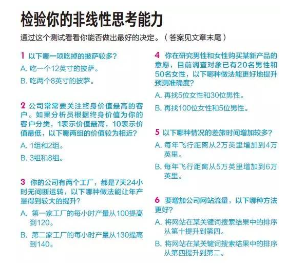 但商業(yè)上許多東西是非線性相關(guān)的,我們必須有這個(gè)意識。通才和專才都要注意,因?yàn)榧词故悄硞€(gè)領(lǐng)域的專家,明白自己領(lǐng)域中存在非線性關(guān)系,也可能下意識地跟隨直覺行事,繼而做出錯(cuò)誤的決定。