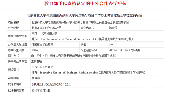 4、北京科技大學-德克薩斯大學阿靈頓分校合作EMBA項目
