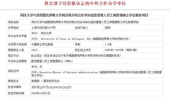 6、同濟大學-德克薩斯大學阿靈頓分校合作EMBA項目