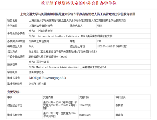 7、上海交通大學-南加利福尼亞大學合作EMBA項目