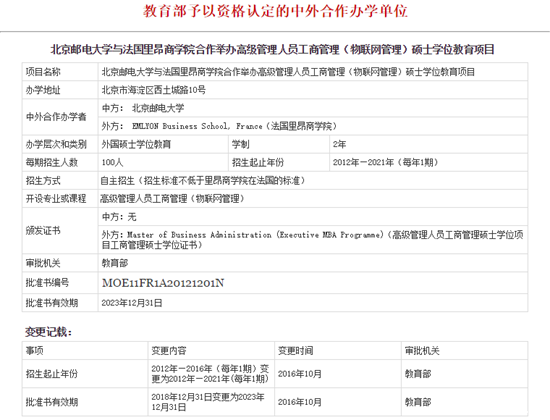 9、北京郵電大學-里昂商學院合作EMBA項目