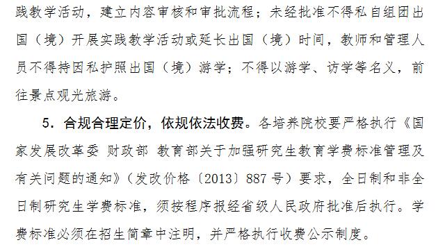 《規(guī)范意見》提到,各院校應(yīng)該嚴(yán)格執(zhí)行相關(guān)規(guī)定要求,全日制和非全日制研究生學(xué)費(fèi)標(biāo)準(zhǔn),須按程序報(bào)經(jīng)省級人民政府批準(zhǔn)后執(zhí)行。學(xué)費(fèi)標(biāo)準(zhǔn)必須在招生簡章中注明,并嚴(yán)格執(zhí)行收費(fèi)公示制度。同時,學(xué)費(fèi)等收入納入培養(yǎng)院校的財(cái)務(wù)統(tǒng)一管理、統(tǒng)一核算,并健全教職工薪酬管理制度,實(shí)行“收支兩條線”。