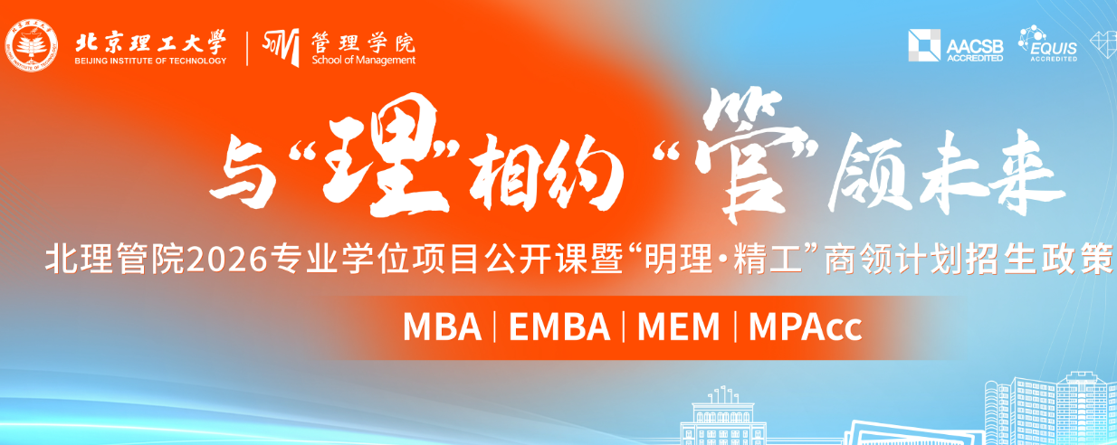 北京理工大學(xué)管理學(xué)院EMBA項(xiàng)目自2003年開辦至今,秉承“管工融通、引領(lǐng)未來”的辦學(xué)使命,將前沿管理理論與企業(yè)實(shí)踐相結(jié)合,培養(yǎng)具有社會(huì)責(zé)任感、創(chuàng)新精神、數(shù)字領(lǐng)導(dǎo)力和科技型戰(zhàn)略決策能力,適應(yīng)國際競爭的企業(yè)家和高階經(jīng)理人。