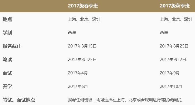 EMBA課程學(xué)制為在職學(xué)習(xí)兩年,通常每月集中授課四天(周四至周日),有少數(shù)課程為二至五天。春季班在每年五月開課,秋季班在每年十月開課。