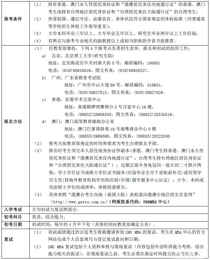 本招生簡章的最終內(nèi)容是以上海大學MBA中心的正式官方網(wǎng)站最新和正式公布的信息為準。