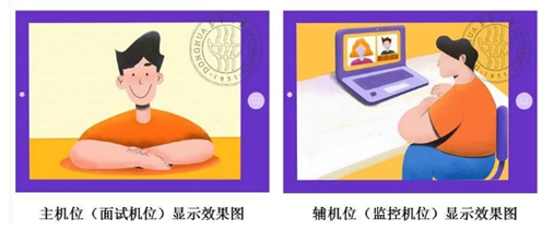 【主機位】:考生應正對【主機位】攝像頭,保持坐姿端正,面部、上半身及雙手在【主機位】畫面中清晰可見,不得遮擋面部、耳朵等部位,不得戴帽子、墨鏡、口罩等,復試全程考生應保持注視攝像頭,視線不得離開,不得中途離場。保證音像設(shè)備全程打開。