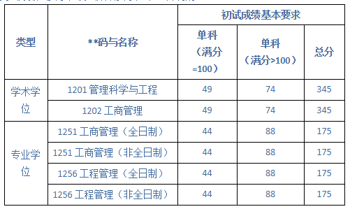根據(jù)學(xué)校復(fù)試分?jǐn)?shù)線要求,初試成績(jī)要求如下(含調(diào)劑):