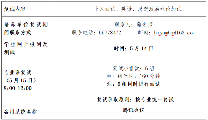 (2)復(fù)試以復(fù)試組形式進(jìn)行,復(fù)試組成員由相關(guān)專業(yè)的研究生工作負(fù)責(zé)人、學(xué)科帶頭人、學(xué)術(shù)骨干、碩士生導(dǎo)師等多人組成。