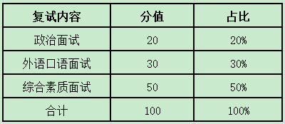 (1)復(fù)試總成績 =政治面試成績+綜合素質(zhì)面試成績+外語口語面試成績