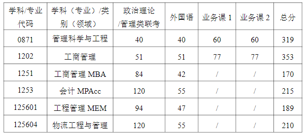 1.專業(yè)知識(40分)各專業(yè)具體考核內(nèi)容及知識范圍如下:各專業(yè)具體考核內(nèi)容涉及到考核知識范圍內(nèi)的應(yīng)知應(yīng)會專業(yè)基礎(chǔ)理論知識,包括基本概念、基本原理、基本方法、主要內(nèi)容、影響因素、特學(xué)科專業(yè)代碼學(xué)科專業(yè)名稱學(xué)習(xí)形式(全日制/非全日制)已接收推免生擬招生計(jì)劃0871管理科學(xué)與工程全日制7250871管理科學(xué)與工程非全日制—41202工商管理全日制11141251工商管理MBA非全日制—841253會計(jì)MPAcc全日制—80125601工程管理MEM非全日制—30125604物流工程與管理全日制—103點(diǎn)、分類、學(xué)派代表人物及其貢獻(xiàn)等。管理科學(xué)與工程學(xué)術(shù)學(xué)位考生考核統(tǒng)計(jì)學(xué)基本理論方法;工商管理學(xué)術(shù)學(xué)位考生考核企業(yè)管理基本理論知識;會計(jì)專業(yè)學(xué)位考生考核知識范圍包括會計(jì)學(xué)和財(cái)務(wù)管理學(xué)基本理論知識;工商管理、工程管理領(lǐng)域?qū)I(yè)學(xué)位考生考核管理學(xué)基本理論知識;物流工程與管理領(lǐng)域?qū)I(yè)學(xué)位考生考核統(tǒng)計(jì)學(xué)基本理論方法;單考計(jì)劃考生考核企業(yè)管理基本理論知識。