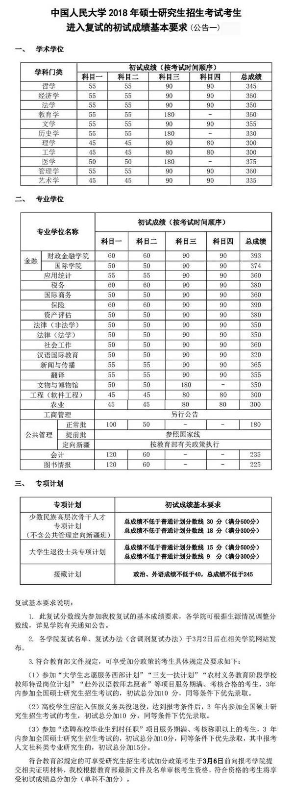 中國(guó)人民大學(xué)2018年碩士研究生復(fù)試分?jǐn)?shù)線現(xiàn)已公布,具體復(fù)試分?jǐn)?shù)線情況如下:
