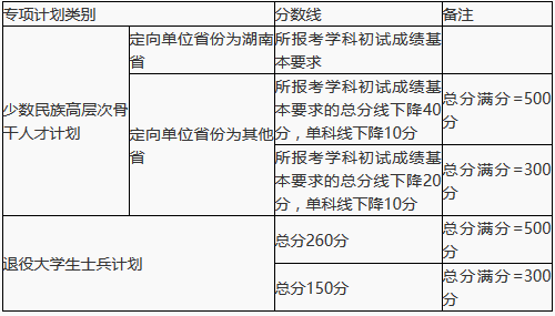 5.工作單位在國務(wù)院公布的民族區(qū)域自治地方,且定向就業(yè)原單位的少數(shù)民族在職人員考生,可在相應(yīng)學(xué)科分數(shù)線基礎(chǔ)上總分降5分或一門單科降5分。符合條件的考生于3月14日前向湖南大學(xué)研究生院招生辦公室提出書面申請。
