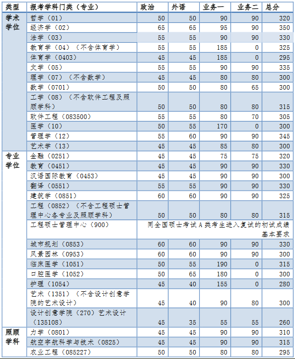 1.政治理論、外國語滿分為100分,業(yè)務(wù)課滿分為150分(管理類綜合能力滿分為200分,教育學(xué)、醫(yī)學(xué)門類的業(yè)務(wù)課滿分為300分)。
