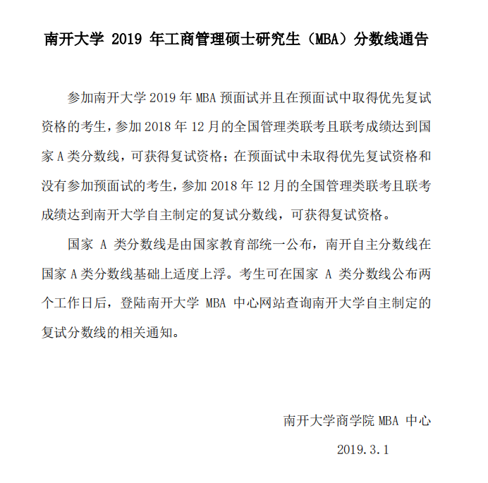 | 工商管理碩士(125100) | 工商管理碩士復(fù)試分?jǐn)?shù)線相關(guān)解釋詳見南開大學(xué)MBA中心網(wǎng)站 | ||||