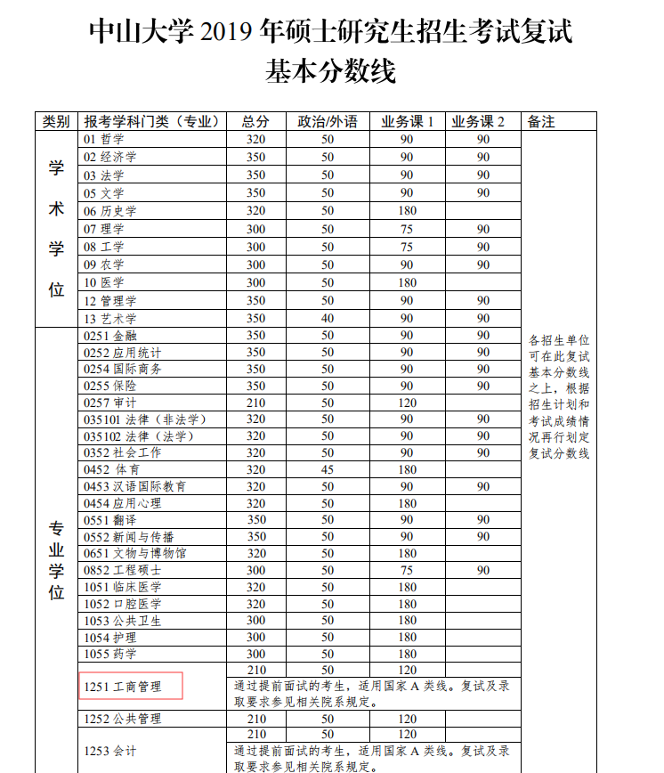 2019年中山大學(xué)MBA分?jǐn)?shù)線
