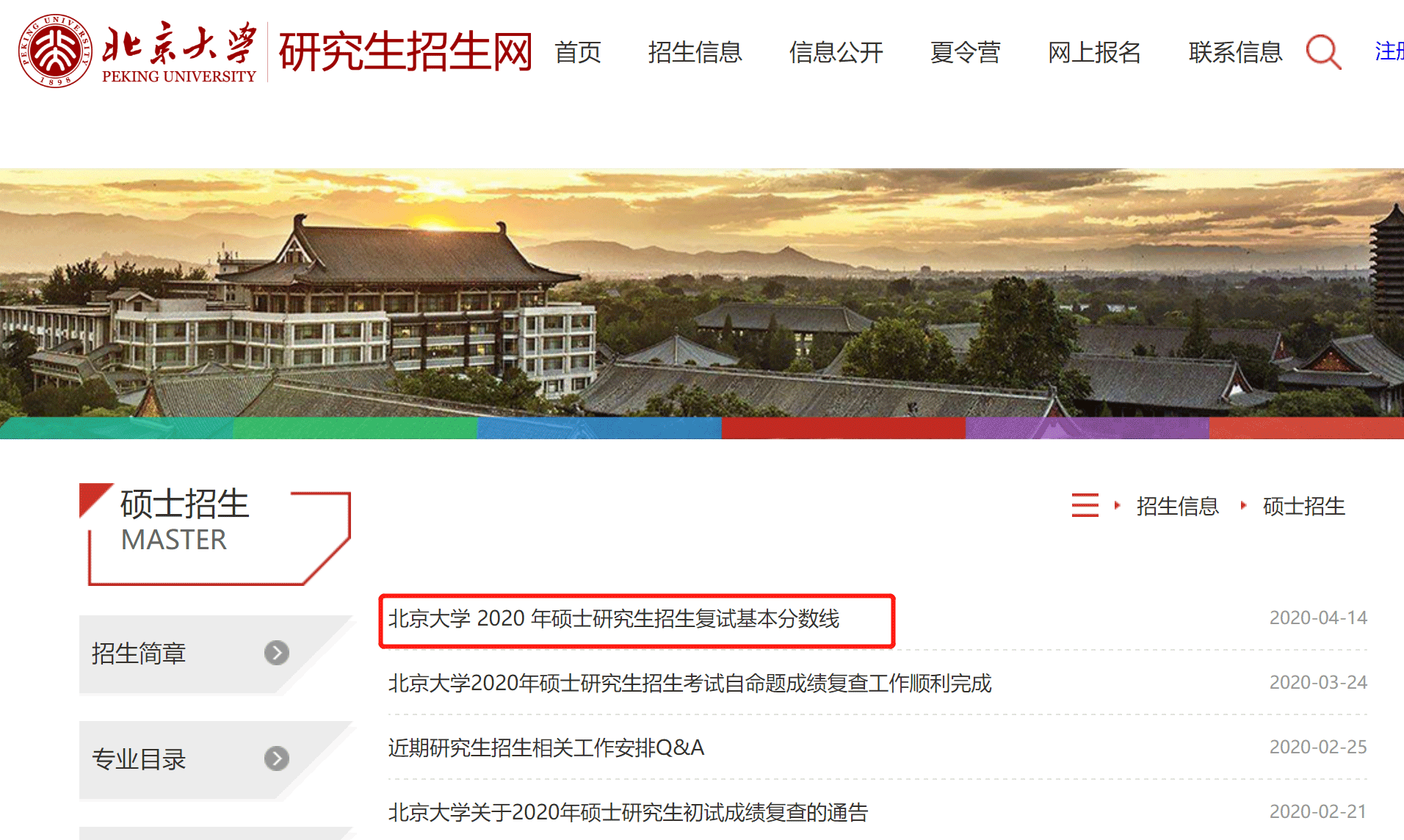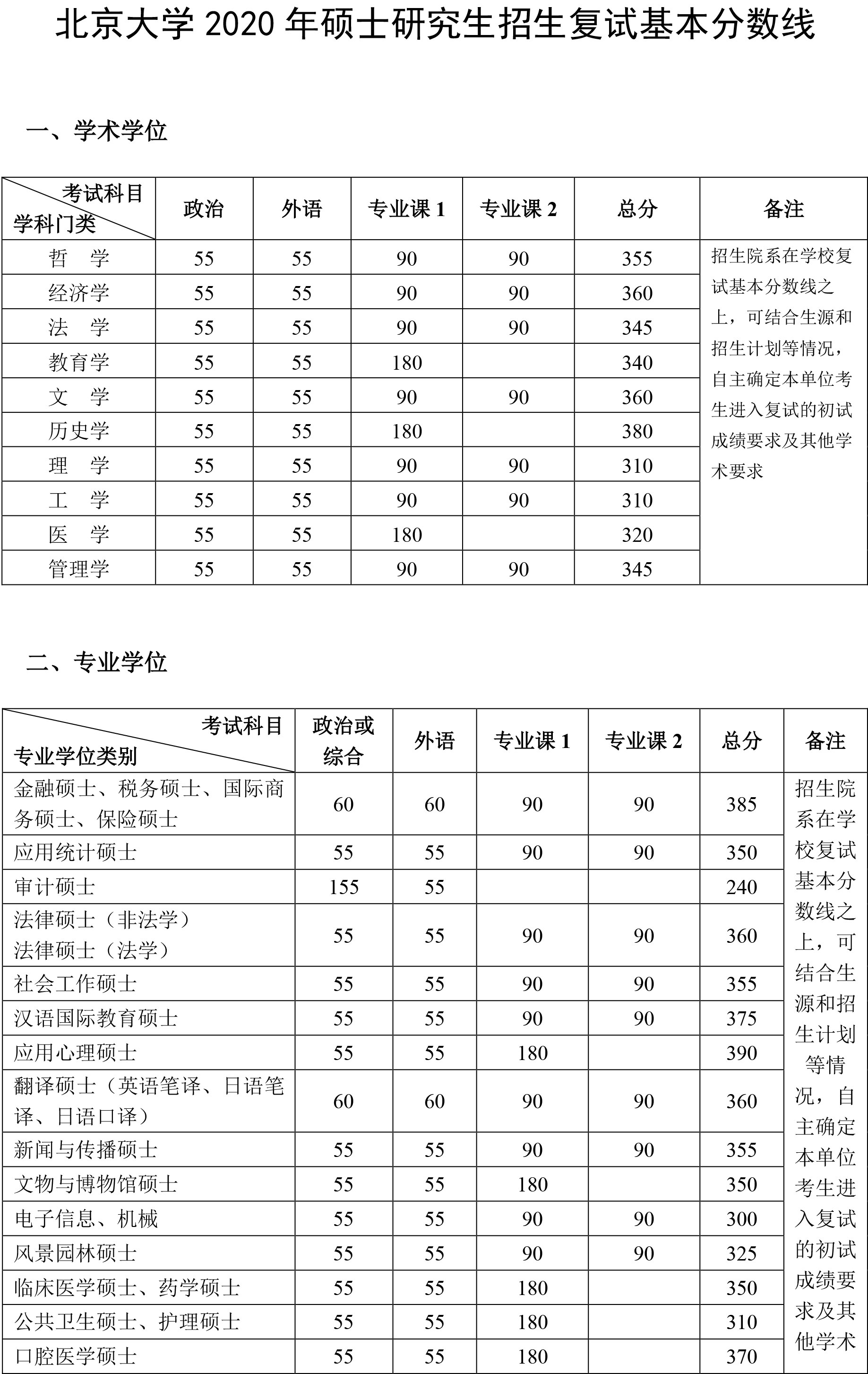 導(dǎo)讀:北京大學(xué)公布了2020年碩士研究生招生復(fù)試基本分?jǐn)?shù)線