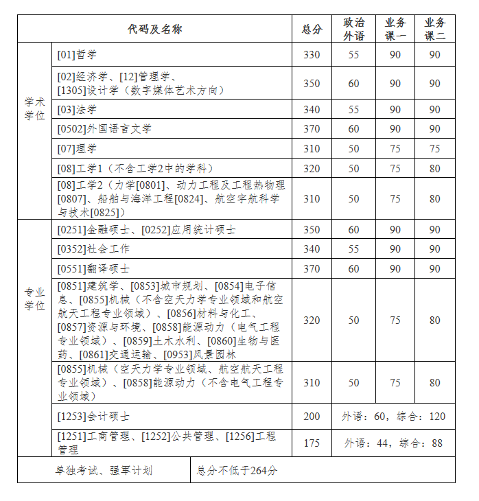 繼2020考研國家線公布后,34所自主劃線院校也陸續(xù)公布分?jǐn)?shù)線,哈爾濱工業(yè)大學(xué)公布了2020年碩士研究生招生復(fù)試基本分?jǐn)?shù)線,如下所示: