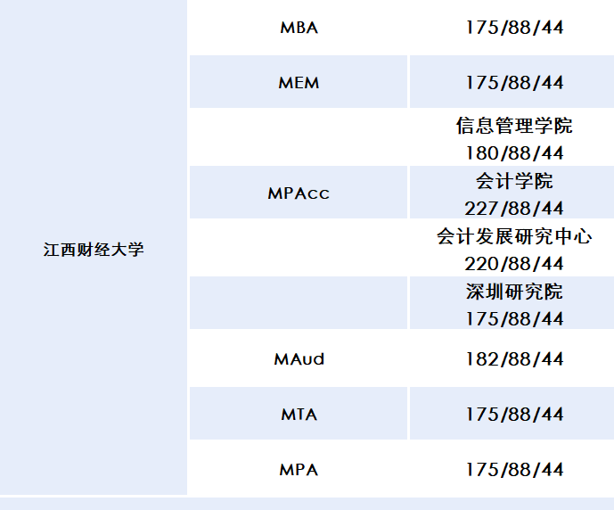 江西財經(jīng)大學(xué)2020年MBA復(fù)試基本分?jǐn)?shù)線:175/44/88