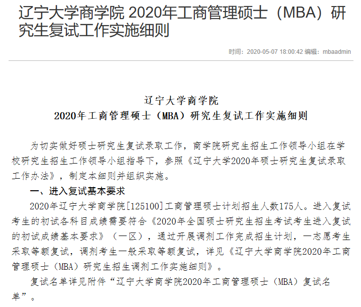 導(dǎo)讀:今天整理了“2020MBA分?jǐn)?shù)線:遼寧大學(xué)2020年MBA復(fù)試基本分?jǐn)?shù)線”的內(nèi)容,希望對(duì)大家有所幫助!