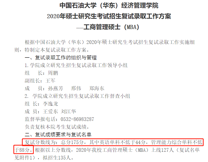 導(dǎo)讀:今天整理了“2020MBA分?jǐn)?shù)線:中國石油大學(xué)(華東)2020年MBA復(fù)試基本分?jǐn)?shù)線”的內(nèi)容,希望對大家有所幫助!
