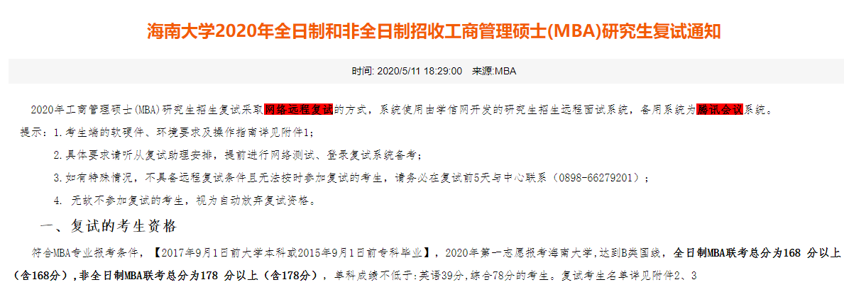 導(dǎo)讀:今天整理了“2020MBA分?jǐn)?shù)線:海南大學(xué)2020年MBA復(fù)試基本分?jǐn)?shù)線”的內(nèi)容,希望對(duì)大家有所幫助!