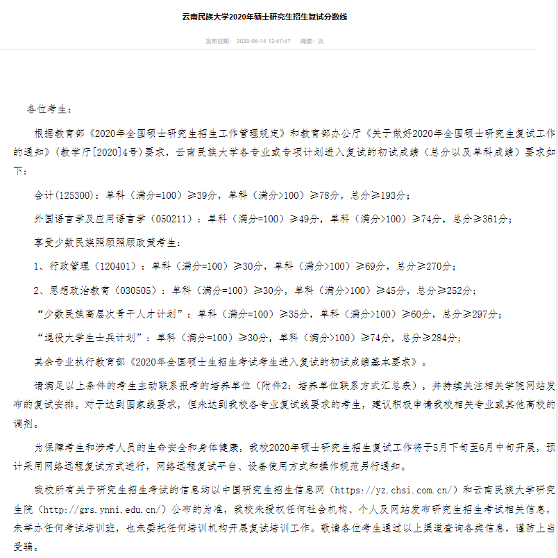 導(dǎo)讀:今天整理了“2020MBA分?jǐn)?shù)線:云南民族大學(xué)2020年MBA復(fù)試基本分?jǐn)?shù)線”的內(nèi)容,希望對(duì)大家有所幫助!