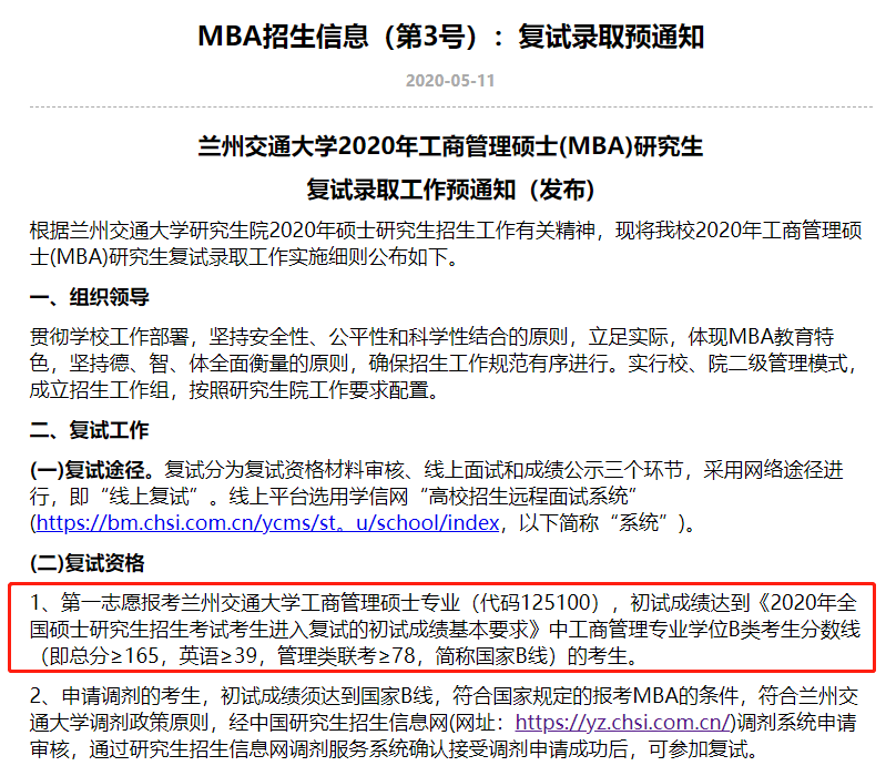 導(dǎo)讀:今天整理了“2020MBA分?jǐn)?shù)線:蘭州交通大學(xué)2020年MBA復(fù)試基本分?jǐn)?shù)線”的內(nèi)容,希望對(duì)大家有所幫助!