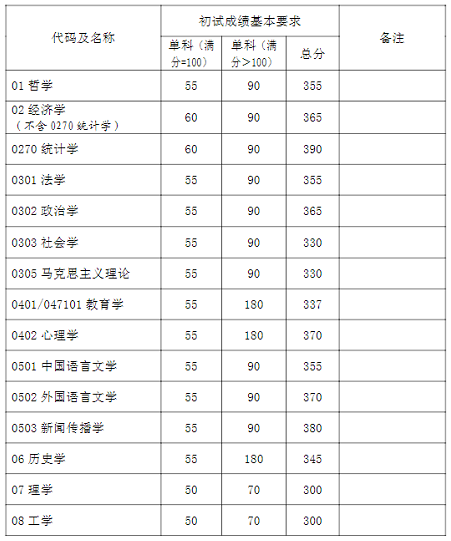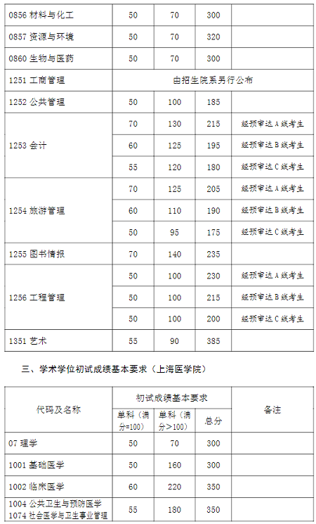 一、學術學位初試成績基本要求(不含上海醫(yī)學院)