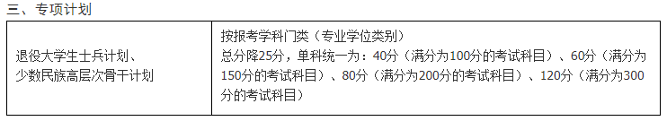 (2)高校學(xué)生應(yīng)征入伍服現(xiàn)役退役,達(dá)到報(bào)考條件后,3年內(nèi)參加全國(guó)碩士研究生招生考試的考生,初試總分加10分,同等條件下優(yōu)先錄取。納入“退役大學(xué)生士兵”專(zhuān)項(xiàng)計(jì)劃招錄的,不再享受退役大學(xué)生士兵初試加分政策。