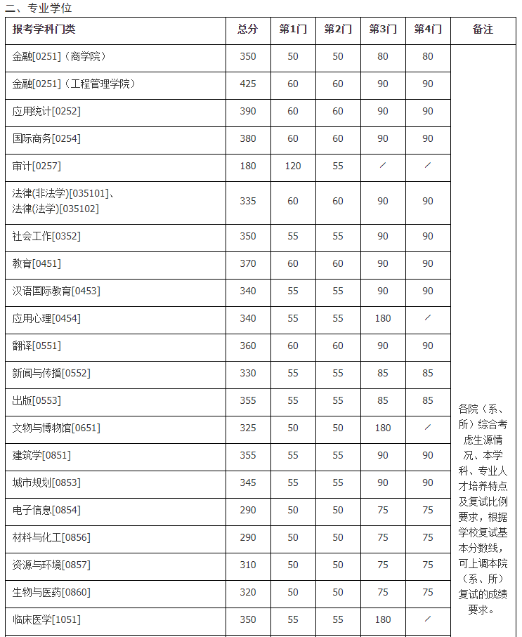 (6)招生院系可在學(xué)校公布的復(fù)試基本分?jǐn)?shù)線(xiàn)基礎(chǔ)上,結(jié)合生源及招生計(jì)劃自主確定復(fù)試分?jǐn)?shù)線(xiàn),請(qǐng)考生關(guān)注各學(xué)院發(fā)布的復(fù)試方案。