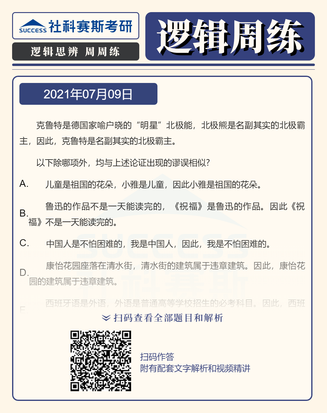 以上就是“2022MBA邏輯:2022MBA聯(lián)考邏輯習(xí)題及答案解析(7月9日)”的全部?jī)?nèi)容,更多邏輯精選習(xí)題,請(qǐng)持續(xù)關(guān)注社科賽斯MBA備考網(wǎng)!