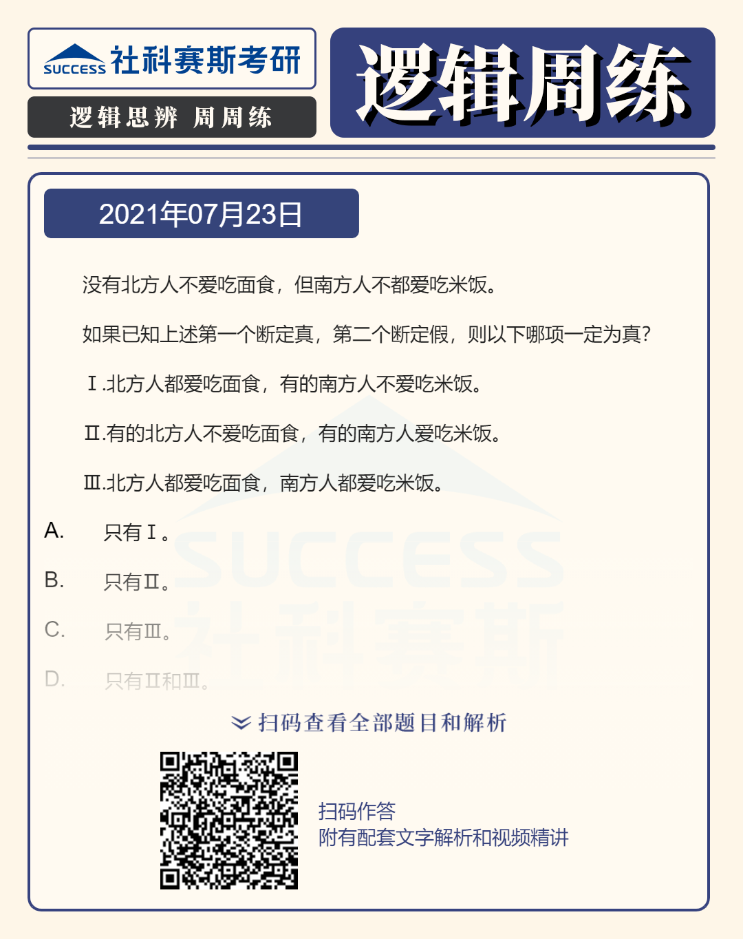 以上就是“2022MBA邏輯:2022MBA聯(lián)考邏輯習(xí)題及答案解析(7月23日)”的全部內(nèi)容,更多邏輯精選習(xí)題,請持續(xù)關(guān)注社科賽斯MBA備考網(wǎng)!