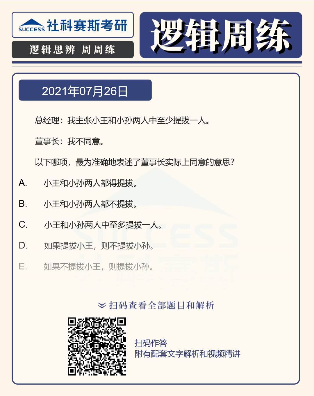 以上就是“2022MBA邏輯:2022MBA聯(lián)考邏輯習(xí)題及答案解析(7月26日)”的全部內(nèi)容,更多邏輯精選習(xí)題,請持續(xù)關(guān)注社科賽斯MBA備考網(wǎng)!