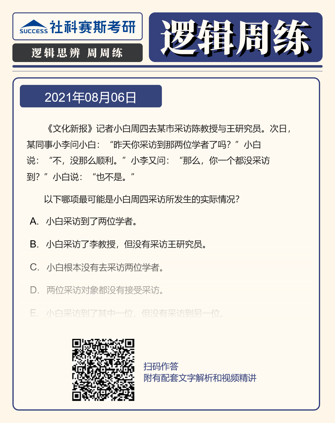 以上就是“2022MBA邏輯:2022MBA聯(lián)考邏輯習(xí)題及答案解析(8月6日)”的全部內(nèi)容,更多邏輯精選習(xí)題,請持續(xù)關(guān)注社科賽斯MBA備考網(wǎng)!