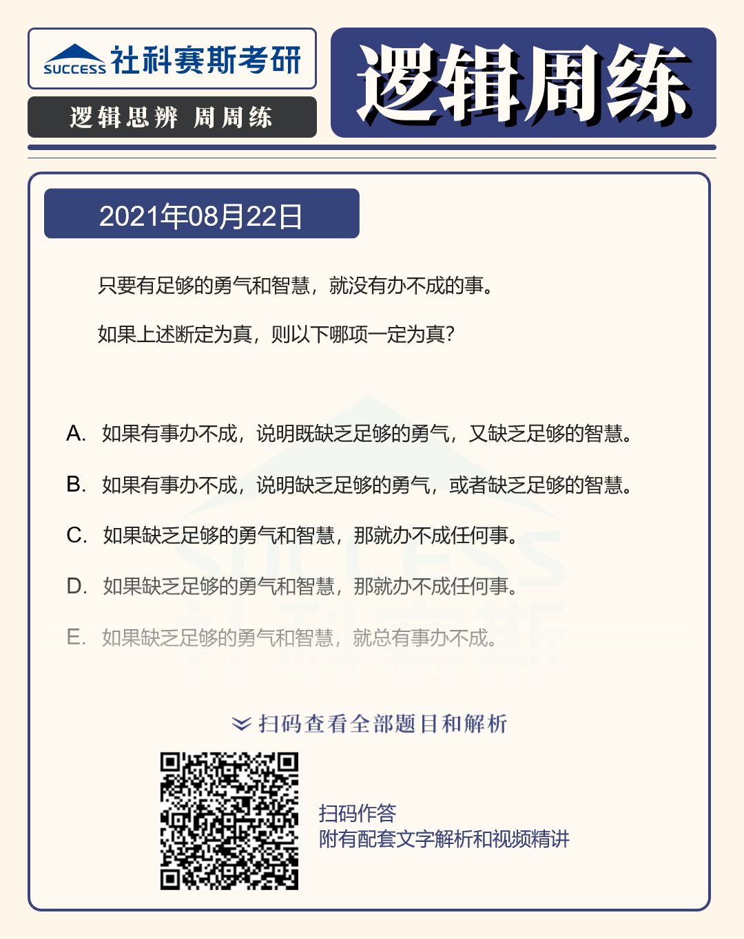 以上就是“2022MBA邏輯:2022MBA聯(lián)考邏輯習(xí)題及答案解析(8月22日)”的全部?jī)?nèi)容,更多邏輯精選習(xí)題,請(qǐng)持續(xù)關(guān)注社科賽斯MBA備考網(wǎng)!