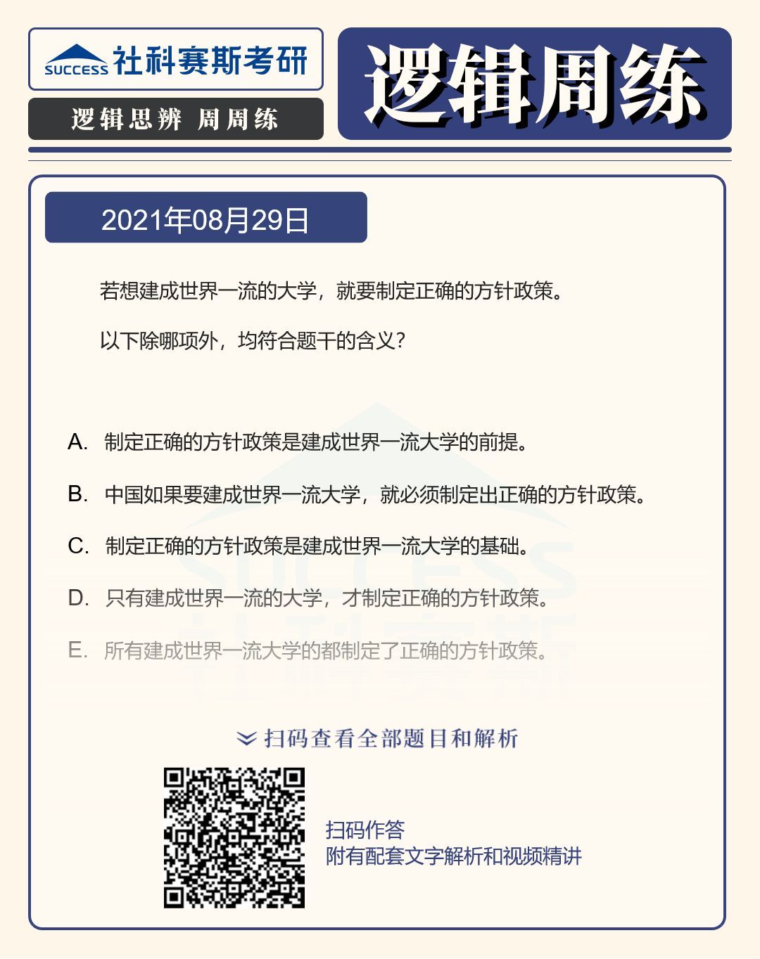 以上就是“2022MBA邏輯:2022MBA聯(lián)考邏輯習(xí)題及答案解析(8月29日)”的全部?jī)?nèi)容,更多邏輯精選習(xí)題,請(qǐng)持續(xù)關(guān)注社科賽斯MBA備考網(wǎng)!